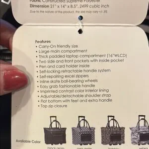 NWT Calpak Zebra Print Rolling Tote Zanny Bag Carry On