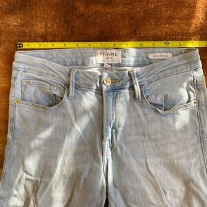 Frame's signature Le Crop Mini Boot jeans feature a high-rise, cropped boot-cut silhouette. Classic five-pocket styling completes this soft-stretch style.