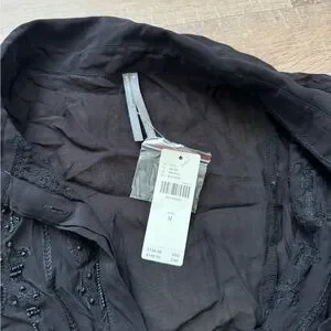 NWT By Anthropologie Long-Sleeve Collared Embellished Fringe Blouse