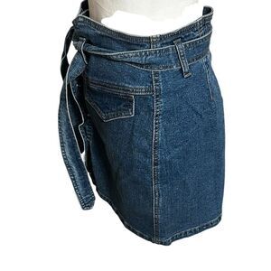 Amazing skirt measurements are shown in the photo has a beautiful tie for the front. These beautiful embellished buttons that are snap in the front pencil skirt in excellent slightly used condition no holes.