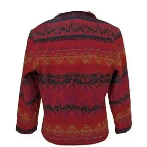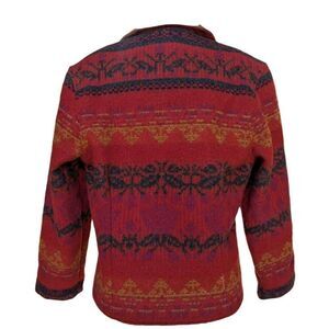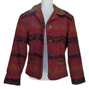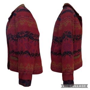 Vintage Woolrich Jacket Red Southwestern Aztec Suede Trim Wool USA Size S Button