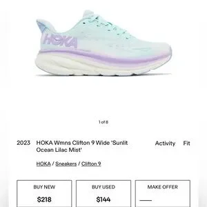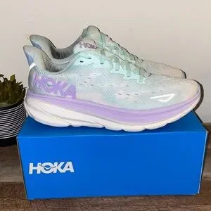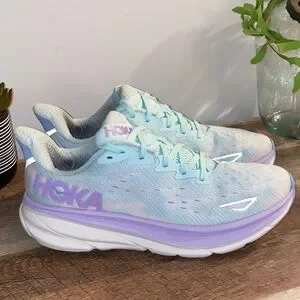Stylish Hoka One One Clifton 9 athletic shoes.