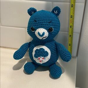 Handcrafted grumpy bear care bear Amigurumi crochet figure. Perfect for a toy or nostalgic decor. See photos for measurements.