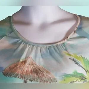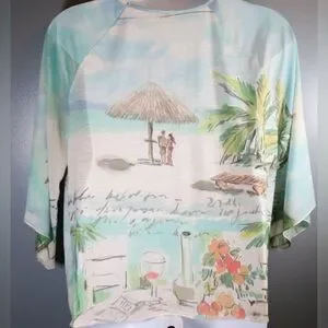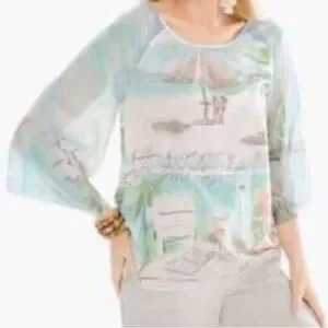 Chicoâs Tropical Beach Scene Sheer Blouse (Size 3 / XL)