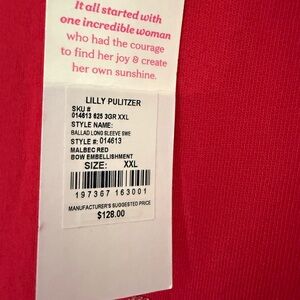 Lilly Pulitzer Red Ballard Sweatshirt with Bows Size XXL NWT Retail $128