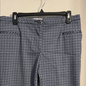 These blue trousers from Reitmans feature a subtle checkered pattern, offering a sophisticated and polished look. The tailored, straight-leg cut ensures a sleek fit, making them ideal for formal occasions. Crafted with attention to detail, these trousers are a stylish addition to any wardrobe.