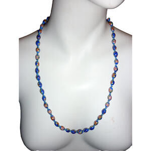 Vintage Dark Blue Cloisonne Bead Necklace Beaded 22" Gold Plate Clasp Enamel