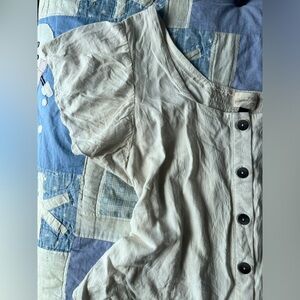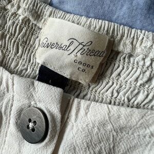 Universal Thread Womens White Linen Blend Peasant Coastal Button Up Flutter Sleeve Top