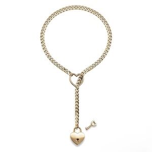 NEW! 90s/Y2K Heart Lock & Key Gold Stainless Steel Adjustable Toggle Necklace