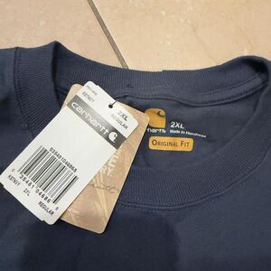 Authentic Carhartt pocket short sleeve tee in men’s 2XL, classic navy colorway. Features chest pocket with Carhartt logo and a bold back graphic from the 33rd Annual International Lineman’s Rodeo (2016). Heavyweight workwear tee built for durability and everyday wear. Brand new with original tags attached. Great for work, casual wear, or collectors of Carhartt and lineman gear.