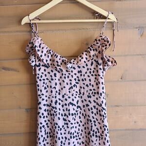 Forever21 Leopard Spot Ruffle Tie Shoulder Maxi Dress Medium Boho Flowy Summer