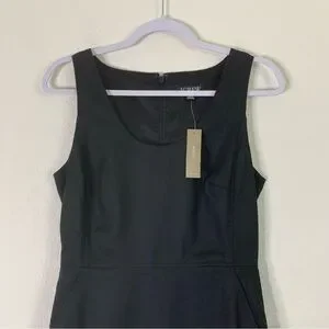 J.crew Womens black Scoopneck resume dress in stretch linen blend / sleeveless/ black zip // has pockets