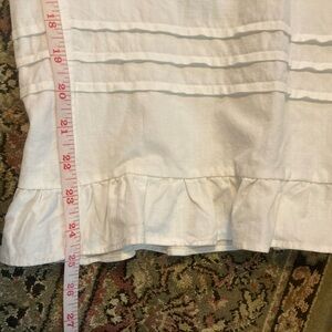 From the site: The original pillowcase pants were in fact made of old pillowcases! These, modeled after the first, are sewn out of a densely woven and slightly textured organic cotton, giving the feel of an antique pillowcase but the wear of a modern rough and tumble fabric. We love these pants as a layer with denim, or under a frilly dress, or on their own. Another truly seasonless pant that will for sure become a staple in your wardrobe. Elastic waist, cropped fit.