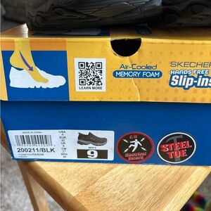Skechers Men's Steel Toe Black Slip-On Sneakers, 9, NWT