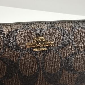 The COACH Slim Zip Wallet in Signature Canvas & Leather is a stylish and versatile accessory for women. Made from PVC coated canvas and leather, this wallet features a sleek zip-around design with a signature C logo design. Features 12 cards slots, 4 long slit pockets to hold paper.money or checkbook. zipper closure pockets in the middle to store.coins and valuables. Brass hardware. Dimensions are 7" in length and 4" in width, this wallet is the perfect size for all your essentials while staying on-trend with the Coach brand. New with tags, never used.