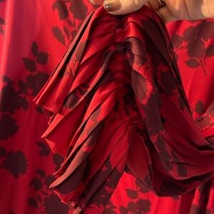 Chico's Crimson and Black Floral Blouse (sz 12-14)