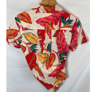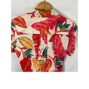 Nine West Tropical Leaf Print Tie Bottom Button Up Shirt Size Small