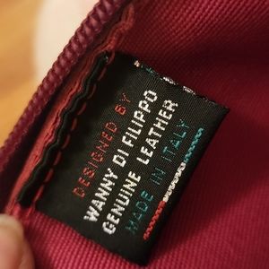 - made from Italian genuine leather. deep red pebbled Italian leather outer, red Cordura inner with bronze hardware accent.