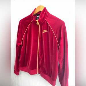 NIKE Red Velvet Zip Up Track Jacket Gold Trim Pockets Womens #AQ797 Size XL