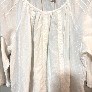 Kim Rogers Woman White Blouse 2X 100% Cotton Boho Style Lace Details 3/4 Sleeves