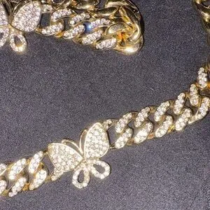 Elegant gold butterfly necklace and bracelet set, perfect for adding a touch of sparkle to any outfit. Features intricate butterfly designs with shimmering accents.