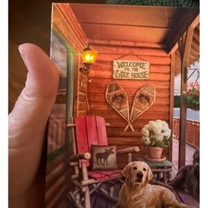 Glow Decor Lighted Lake House Canvas Art Two Dogs on Porch Sunset Scene New