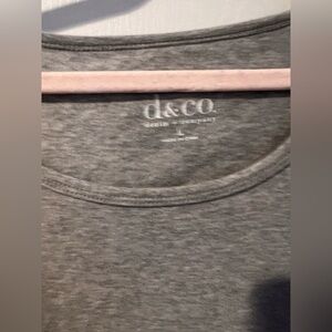 D & co denim + company size large grey top with cutout sleeves.