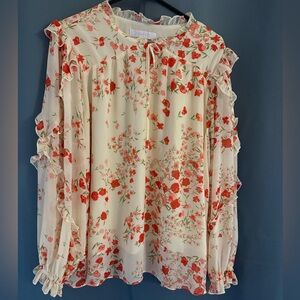 🌸 Sugar Lips Floral Ruffle Blouse – 2X – Cream & Red 🌸
