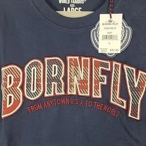 NEW Born Fly Men's Blue 'From Anytown U.S.A To The World' T-Shirt Sz L MSRP $42
