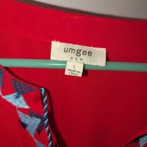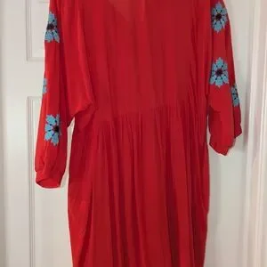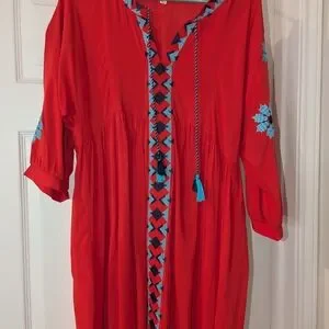 Umgee Red Dress with Blue Embroidery