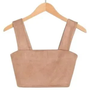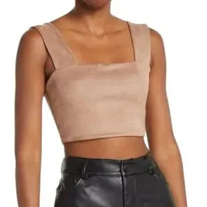 NEW Susana Monaco Sand Faux Suede Wide Strap Crop Top Small