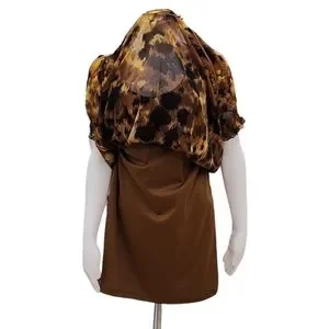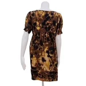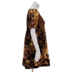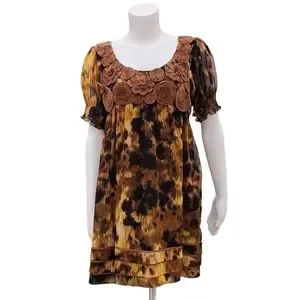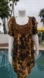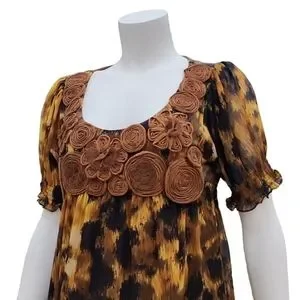 Intricate cappuccino rosette applique detail at chest. Like an abstract leopard print in warm hues.