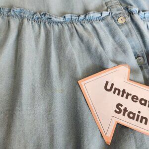 John Mark Chambray Shirt Dress Women's Large Button Up Tunic Ruffle Hem Blue