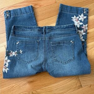 Bandolino Mandie Capri Blue Jeans with Floral Embroidery