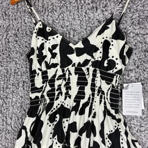 The La Ligne Midi Dress is a stylish choice for a party or wedding guest outfit as well as date night or church. Made from black and white floral cotton poplin, this sleeveless dress features a V-neckline and smocked detail for a touch of elegance. With a medium size and midi length, this dress is perfect for summer and spring events, ensuring you look chic and comfortable. Ideal for those who prefer a more formal yet trendy look, this dress from La Ligne is a great option for any special occasion.