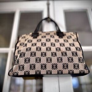 Loewe Anagram Shoulder Tote Bag Canvas & Leather with Dustbag, EUC