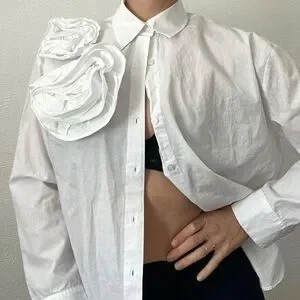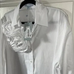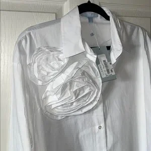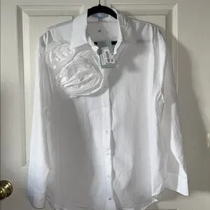 Antonio Melani Womens White Rose Flower Appliqué Button Down Shirt Size Med