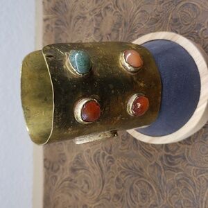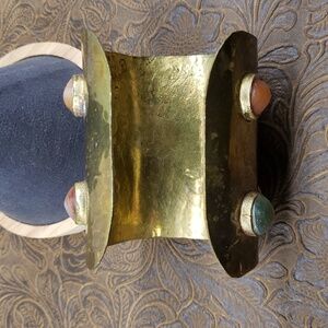Vintage Hammered Agate Bezel Artisan Tribal Boho Cuff Bracelet