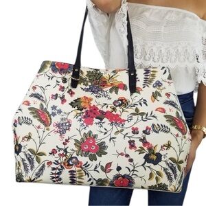 Tory Burch Kensington Large Tote Bag in Garden New Ivory|Luxury Tote Floral Bag