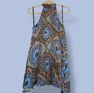 Size XS but would fit a S/M Loose fit Buttons at back of neck No pockets Fabric: 100% Viscose Approx Measurement: Length: 33 in