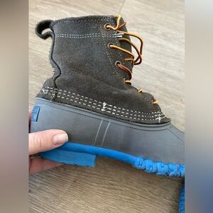RARE, limited edition color way! Stylish, durable, and classic LL Bean boots featuring a RARE gray suede upper with vibrant blue soles.