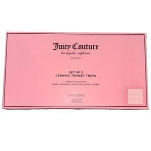 cute set of ceramic dishes perfect for keeping jewelry, keys, or any small items. One tray is heart shaped with the Juicy logo in gold and the other tray is in the shape of 2 red cherries. BRAND NEW, never been used, and in original packaging. Offers welcome!