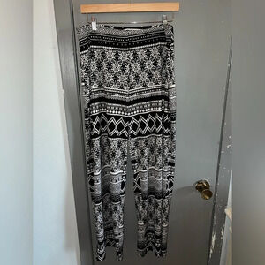 AB STUDIO pants. White and black boho pattern loose fitting size tag is faded.