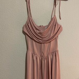 Pink corset Oh Polly Cowl Neck A-line mini dress in Mauve, dress is super cute, has no imperfections and a built-in bra and is more of a blush/pink color in my opinion! Only worn once too and originally listed for $62!