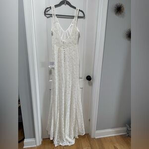 Lulus Beloved Eternity NWT size Medium White Lace Sleeveless Maxi Dress Bridal