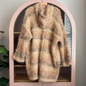 Free People Fuzzy Tan Cardigan Wool Blend Autumn Beau Cardi XS - S with hoodie