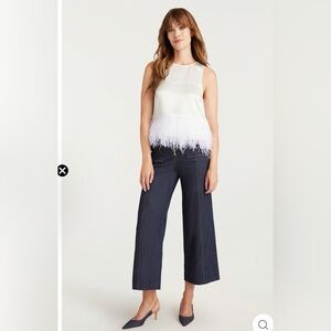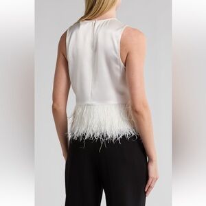 Cinq à Sept Smooth Satin Charisse Feather Trim Top Tank Blouse Shirt medium NWT