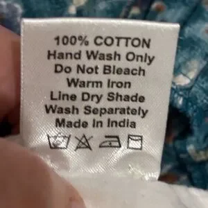 • Fabric: 100% cotton, lined; made in India (hand‑wash only per care tag)