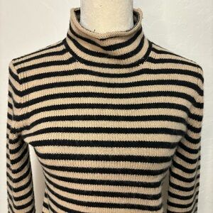 J.Crew Cashmere Wool Black and Tan Striped Long Sleeve Mock Neck Sweater XXS