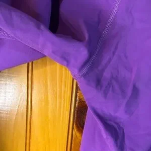 Stylish purple leggings with a flare design. Ideal for yoga and casual wear.